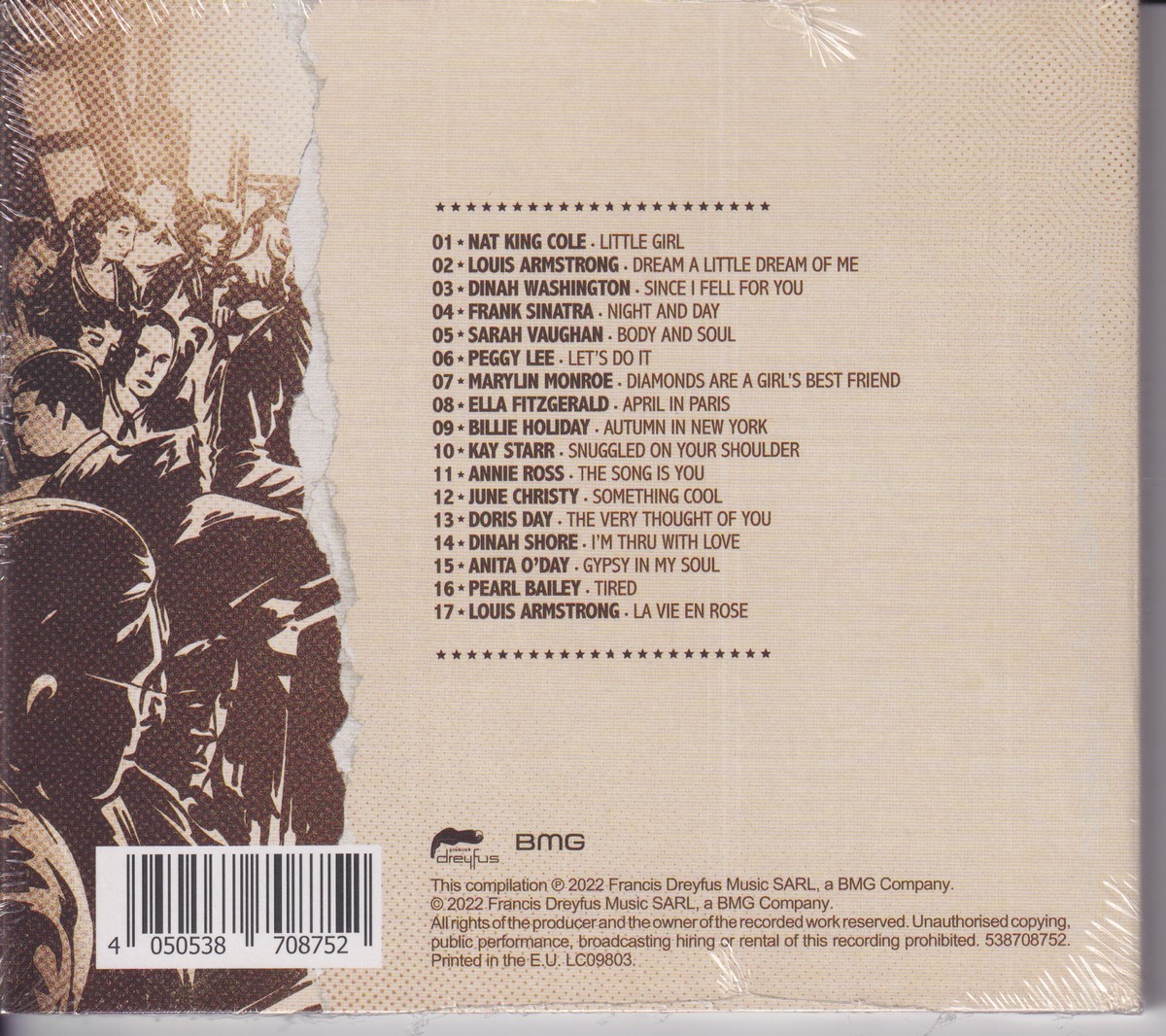 Country of release: Europe Release Year: 2022 Edition: – Features: Compilation Notes: – Tracklist: 1 Nat King Cole – Little Girl 2:23 2 Louis Armstrong, Ella Fitzgerald – Dream A Little Dream Of Me 3:04 3 Dinah Washington – Since I Fell For You 2:40 4 Frank Sinatra – Night And Day 3:42 5 Sarah Vaughan – Body And Soul 3:11 6 Peggy Lee – Let's Do It 2:01 7 Marilyn Monroe – Diamonds Are A Girl's Best Friend 3:39 8 Ella Fitzgerald – April In Paris 4:38 9 Billie Holiday – Autumn In New York 3:41 10 Kay Starr – Snuggled On Your Shoulder 3:03 11 Annie Ross – The Songs Is You 3:09 12 June Christy – Something Cool 4:17 13 Doris Day – The Very Thought Of You 3:01 14 Dinah Shore – I'm Thru With Love 2:37 15 Anita O'Day – Gipsy In My Soul 2:32 16 Pearl Bailey – Tired 3:21 17 Louis Armstrong – La Vie En Rose 3:24 More pictures, click to view full size: