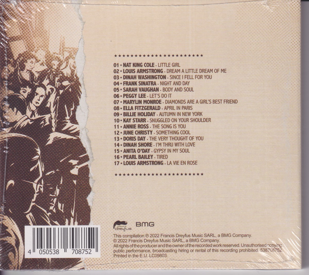 Country of release: Europe Release Year: 2022 Edition: – Features: Compilation Notes: – Tracklist: 1 Nat King Cole – Little Girl 2:23 2 Louis Armstrong, Ella Fitzgerald – Dream A Little Dream Of Me 3:04 3 Dinah Washington – Since I Fell For You 2:40 4 Frank Sinatra – Night And Day 3:42 5 Sarah Vaughan – Body And Soul 3:11 6 Peggy Lee – Let's Do It 2:01 7 Marilyn Monroe – Diamonds Are A Girl's Best Friend 3:39 8 Ella Fitzgerald – April In Paris 4:38 9 Billie Holiday – Autumn In New York 3:41 10 Kay Starr – Snuggled On Your Shoulder 3:03 11 Annie Ross – The Songs Is You 3:09 12 June Christy – Something Cool 4:17 13 Doris Day – The Very Thought Of You 3:01 14 Dinah Shore – I'm Thru With Love 2:37 15 Anita O'Day – Gipsy In My Soul 2:32 16 Pearl Bailey – Tired 3:21 17 Louis Armstrong – La Vie En Rose 3:24 More pictures, click to view full size: