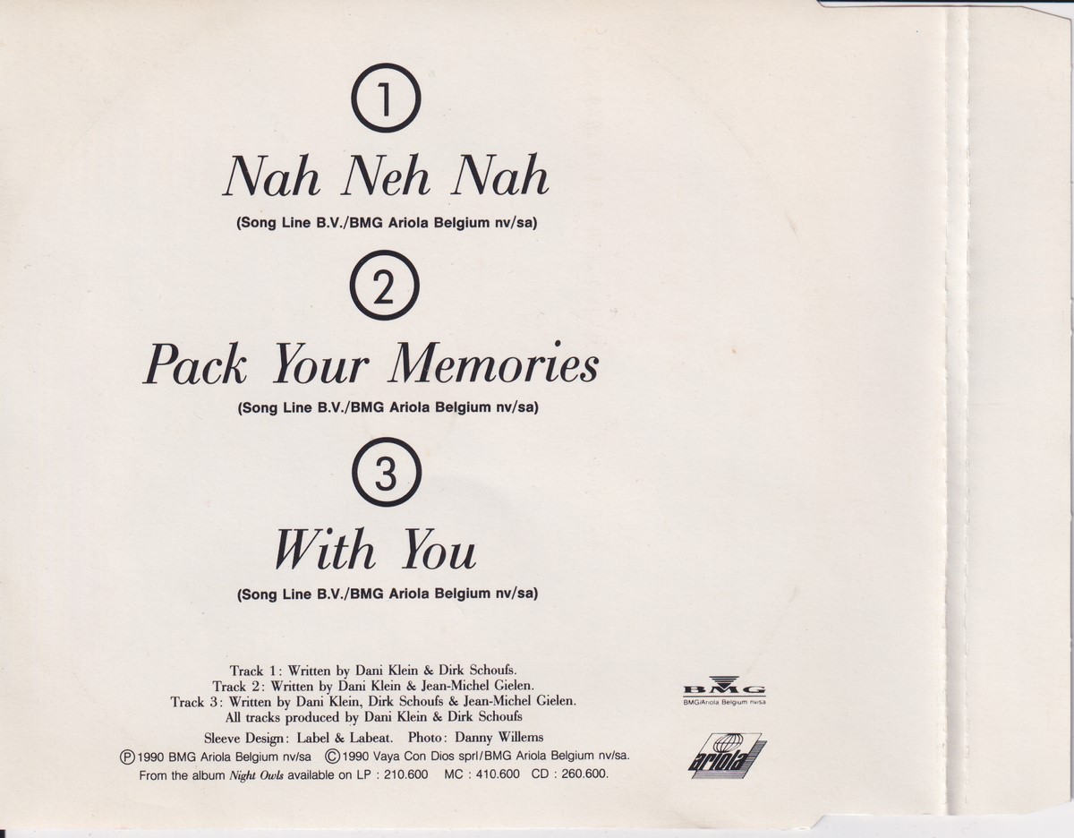 Country of release: Europe Release Year: 1990 Edition: – Features: – Notes: – Tracklist: 1 Nah Neh Nah 2:52 2 Pack Your Memories 3:04 3 With You 4:02 More pictures, click to view full size: