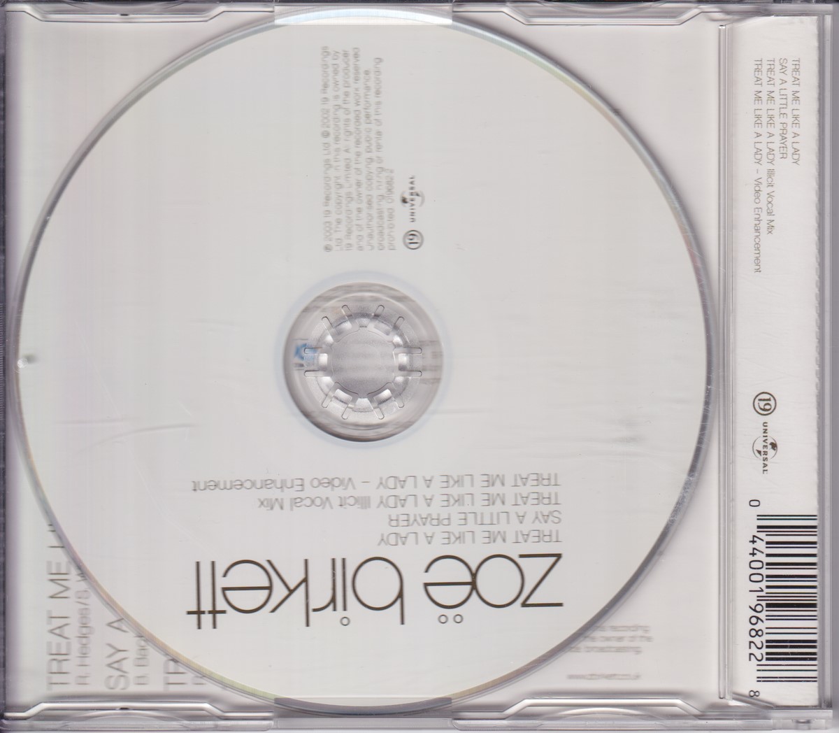 Format: CD Freetext: – Type: Single Number in Set: 1 Case Type: Slimline / J‑card jewel case Label & Cat.no.: 19 Recordings – 019682-2 Universal – 019682-2 |