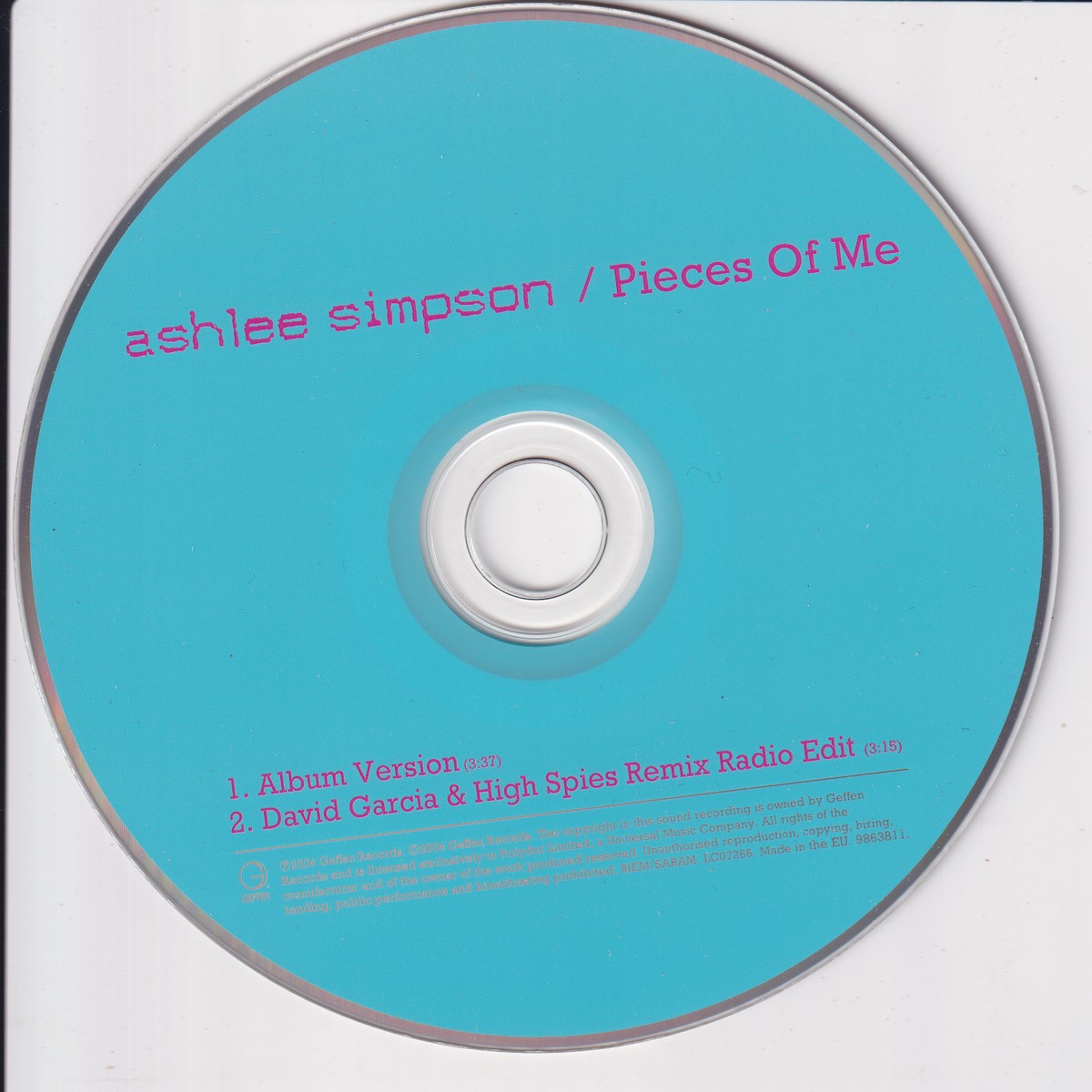 Format: CD Freetext: – Type: Single Number in Set: 1 Case Type: Slimline / J‑card jewel case Label & Cat.no.: Geffen Records – 9863811