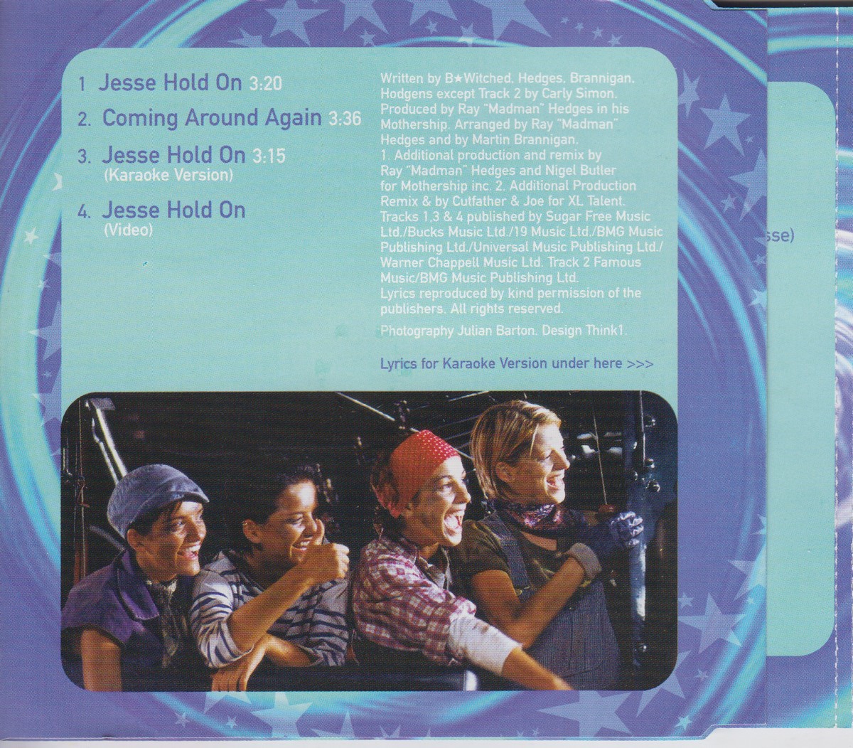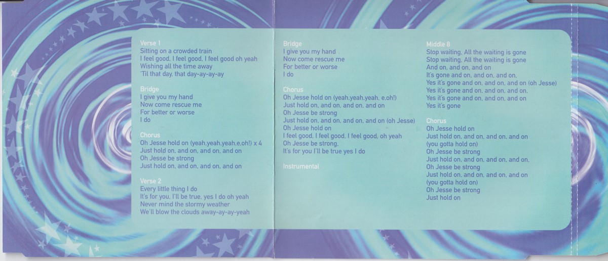 Country of release: UK Release Year: 1999 Edition: – Features: Enhanced CD Notes: – Tracklist: 1 Jesse Hold On 3:20 2 Coming Around Again 3:36 3 Jesse Hold On (Karaoke Version) 3:15 Video Jesse Hold On (Video) More pictures, click to view full size: