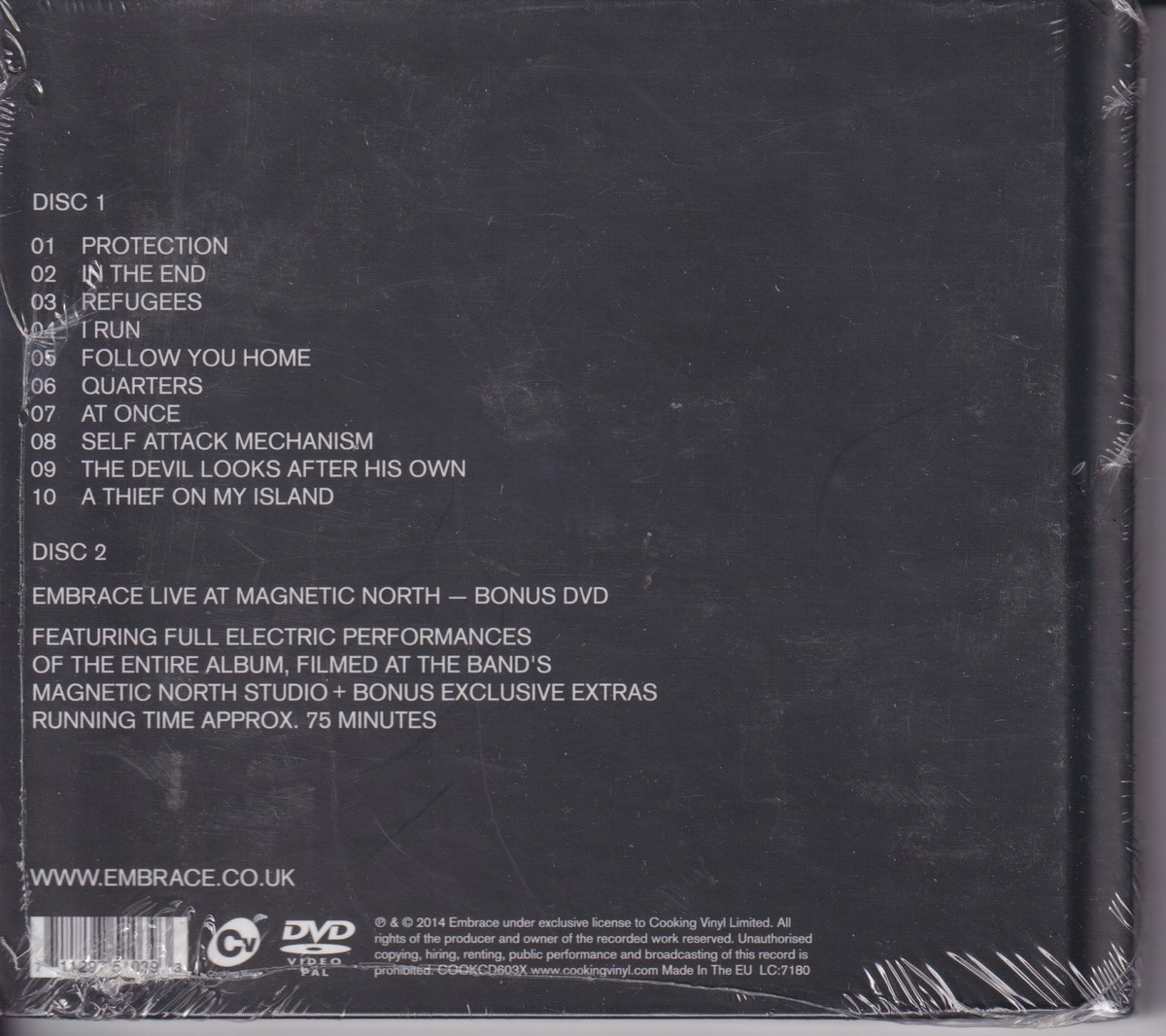 Country of release: Europe Release Year: 2014 Edition: Deluxe Edition Features: – Notes: – Tracklist: Disc 1/2 CD: 1-1 Protection 3:58 1-2 In The End 4:31 1-3 Refugees 5:00 1-4 I Run 4:11 1-5 Follow You Home 4:04 1-6 Quarters 4:53 1-7 At Once 3:57 1-8 Self Attack Mechanism 4:33 1-9 The Devil Looks After His Own 4:49 1-10 A Thief On My Island 6:32 Disc 2/2 DVD: 2-1 Embrace Live At Magnetic North 48:34 2-2 Refugees (Acoustic) 4:26 2-3 Follow You Home (Acoustic) 3:46 2-4 Ashes (Acoustic) 4:44 2-5 Official Refugees Promo Video 4:58 2-6 Secret Gig Trailers 5:19 More pictures, click to view full size: