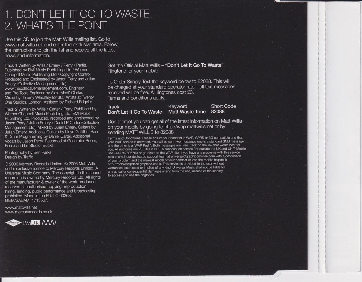 Country of release: UK Release Year: 2006 Edition: – Features: – Notes: – Tracklist: 1 Don't Let It Go To Waste 4:42 2 What's The Point 3:55 More pictures, click to view full size: