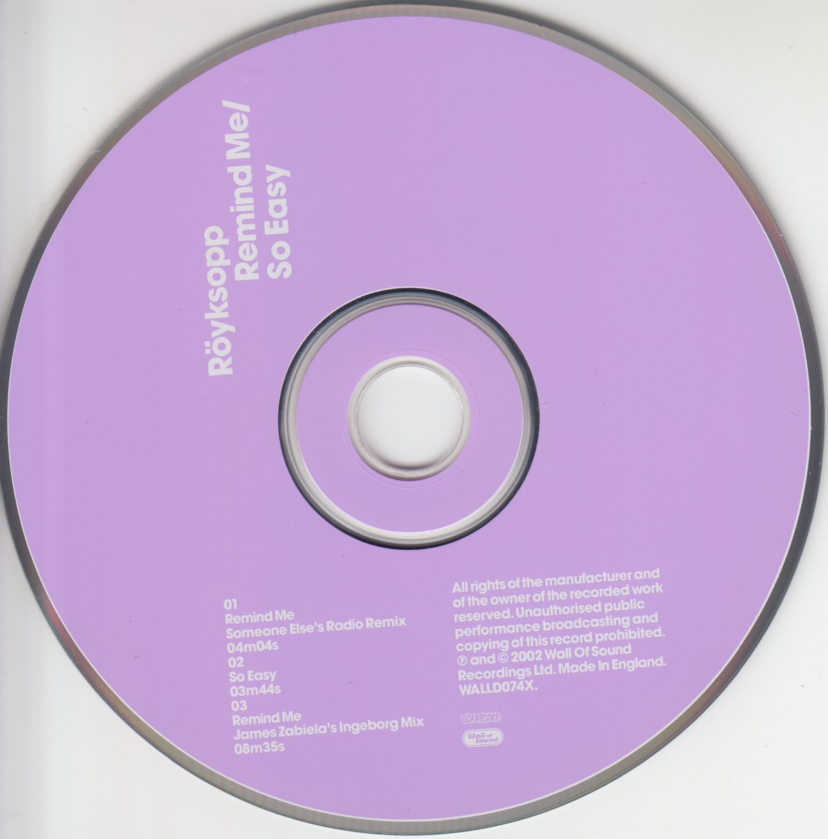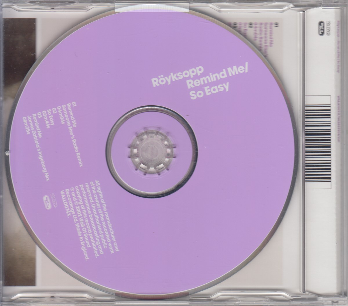 Format: CD Freetext: CD1 Type: Single Number in Set: 1 Case Type: Slimline / J‑card jewel case Label & Cat.no.: Wall Of Sound – WALLD074X