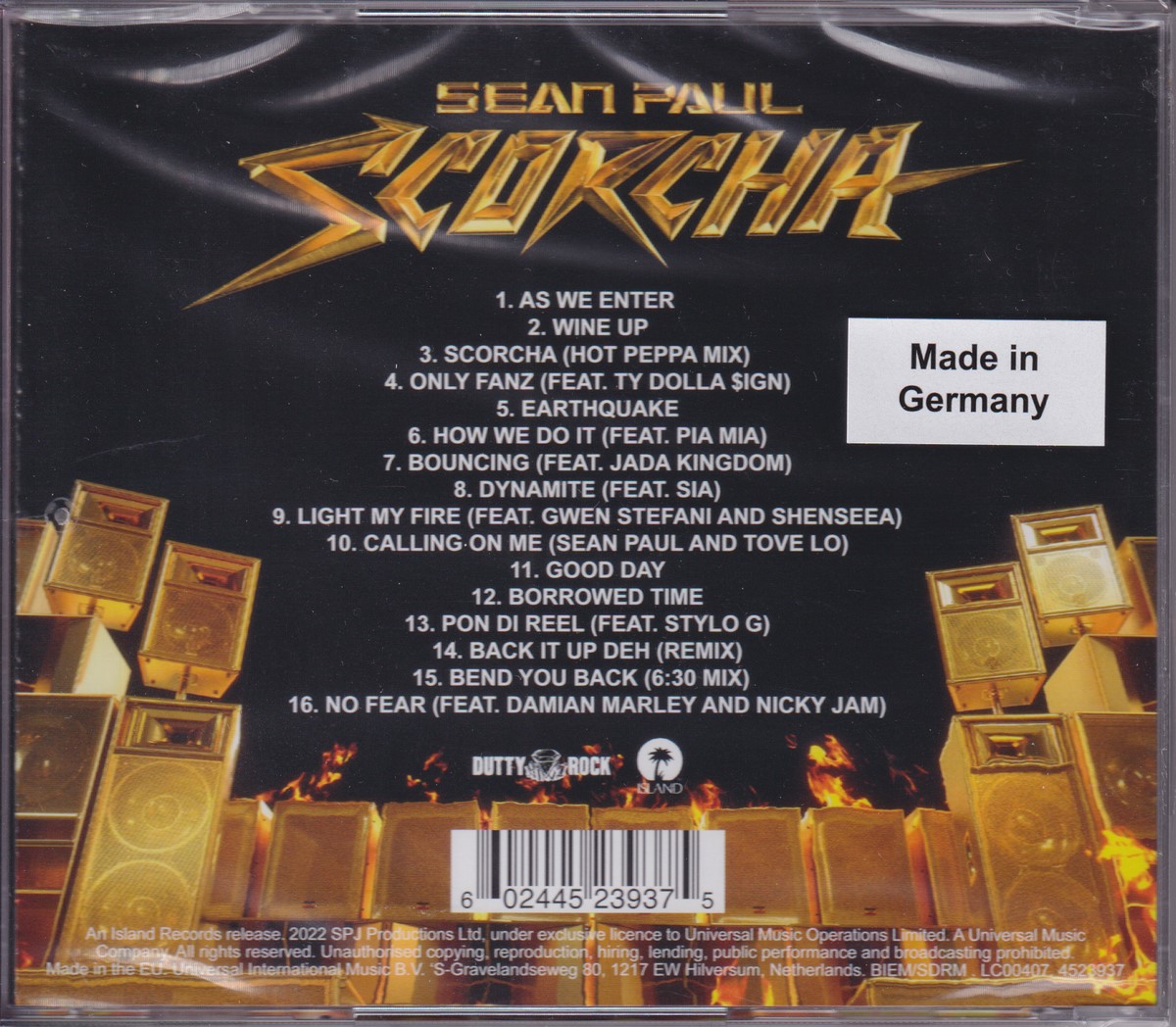 Country of release: Europe Release Year: 2022 Edition: Parental Advisory Features: – Notes: – Tracklist: 1 Sean Paul – As We Enter 2 Sean Paul – Wine Up 3 Sean Paul – Scorcha (Hot Peppa Mix) • Remix – Hot Peppa 4 Sean Paul – Only Fanz • Featuring – Ty Dolla $ign[Ty$] 5 Sean Paul – Earthquake 6 Sean Paul – How We Do It • Featuring – Pia Mia 7 Sean Paul – Bouncing • Featuring – Jada Kingdom 8 Sean Paul – Dynamite • Featuring – Sia 9 Sean Paul – Light My Fire • Featuring – Gwen Stefani, Shenseea 10 Sean Paul & Tove Lo – Calling On Me 11 Sean Paul – Good Day 12 Sean Paul – Borrowed Time 13 Sean Paul – Pon Di Reel • Featuring – Stylo G 14 Sean Paul – Back It Up Deh (Remix) 15 Sean Paul – Bend You Back (6:30 Mix) 16 Sean Paul – No Fear • Featuring – Damian Marley, Nicky Jam More pictures, click to view full size: