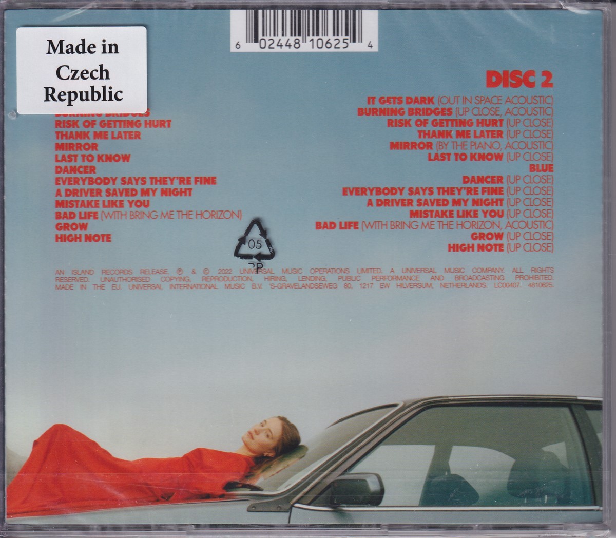 Country of release: Europe Release Year: 2022 Edition: Deluxe Edition Features: – Notes: – Tracklist: Disc 1/2: 1-1 It Gets Dark 1-2 Burning Bridges 1-3 Risk Of Getting Hurt 1-4 Thank Me Later 1-5 Mirror 1-6 Last To Know 1-7 Dancer 1-8 Everybody Says They're Fine 1-9 A Driver Saved My Night 1-10 Mistake Like You 1-11 Bad Life 1-12 Grow 1-13 High Note Disc 2/2: 2-1 It Gets Dark (Out In Space Acoustic) 2-2 Burning Bridges (Up Close, Acoustic) 2-3 Risk Of Getting Hurt (Up Close) 2-4 Thank Me Later (Up Close) 2-5 Mirror (By The Piano, Acoustic) 2-6 Last To Know (Up Close) 2-7 Blue 2-8 Dancer (Up Close) 2-9 Everybody Says They're Fine (Up Close) 2-10 A Driver Saved My Night (Up Close) 2-11 Mistake Like You (Up Close) 2-12 Bad Life (Acoustic) 2-13 Grow (Up Close) 2-14 High Note (Up Close) More pictures, click to view full size: