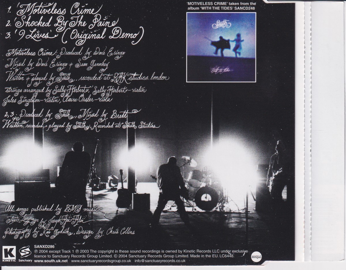 Country of release: UK Release Year: 2004 Edition: – Features: – Notes: – Tracklist: 1 Motiveless Crime 3:16 2 Shocked By The Pain 3:50 3 9 Lives (Original Demo) 3:55 More pictures, click to view full size: