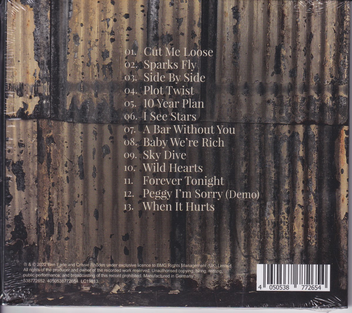 Country of release: Europe Release Year: 2022 Edition: – Features: – Notes: – Tracklist: 1 Cut Me Loose 3:22 2 Sparks Fly 3:10 3 Side By Side 2:55 4 Plot Twist 4:09 5 10 Year Plan 3:23 6 I See Stars 3:18 7 A Bar Without You 3:02 8 Baby We're Rich 3:03 9 Sky Dive 4:00 10 Wild Hearts 3:12 11 Forever Tonight 3:11 12 Peggy I'm Sorry (Demo) 3:30 13 When It Hurts 3:41 More pictures, click to view full size: