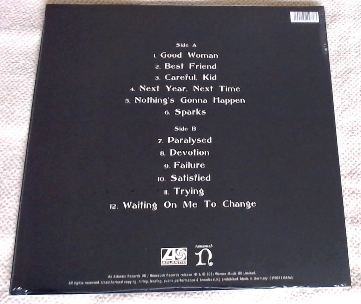 Country of release: UK Release Year: 2021 Edition: – Features: – Notes: – Tracklist: A1 Good Woman A2 Best Friend A3 Careful, Kid A4 Next Year, Next Time A5 Nothing's Gonna Happen A6 Sparks B1 Paralysed B2 Devotion B3 Failure B4 Satisfied B5 Trying B6 Waiting On Me To Change More pictures, click to view full size: