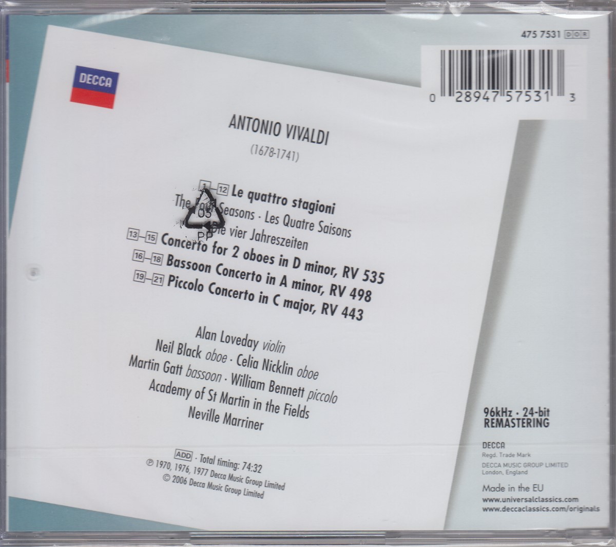 1: Condition: New Condition Notes: Sealed. eBay listing: Vivaldi Four Seasons - Academy Of St. Martin-in-the-Fields, Neville Marriner Condition: New Price: £7.95 https://www.ebay.co.uk/itm/116267956925